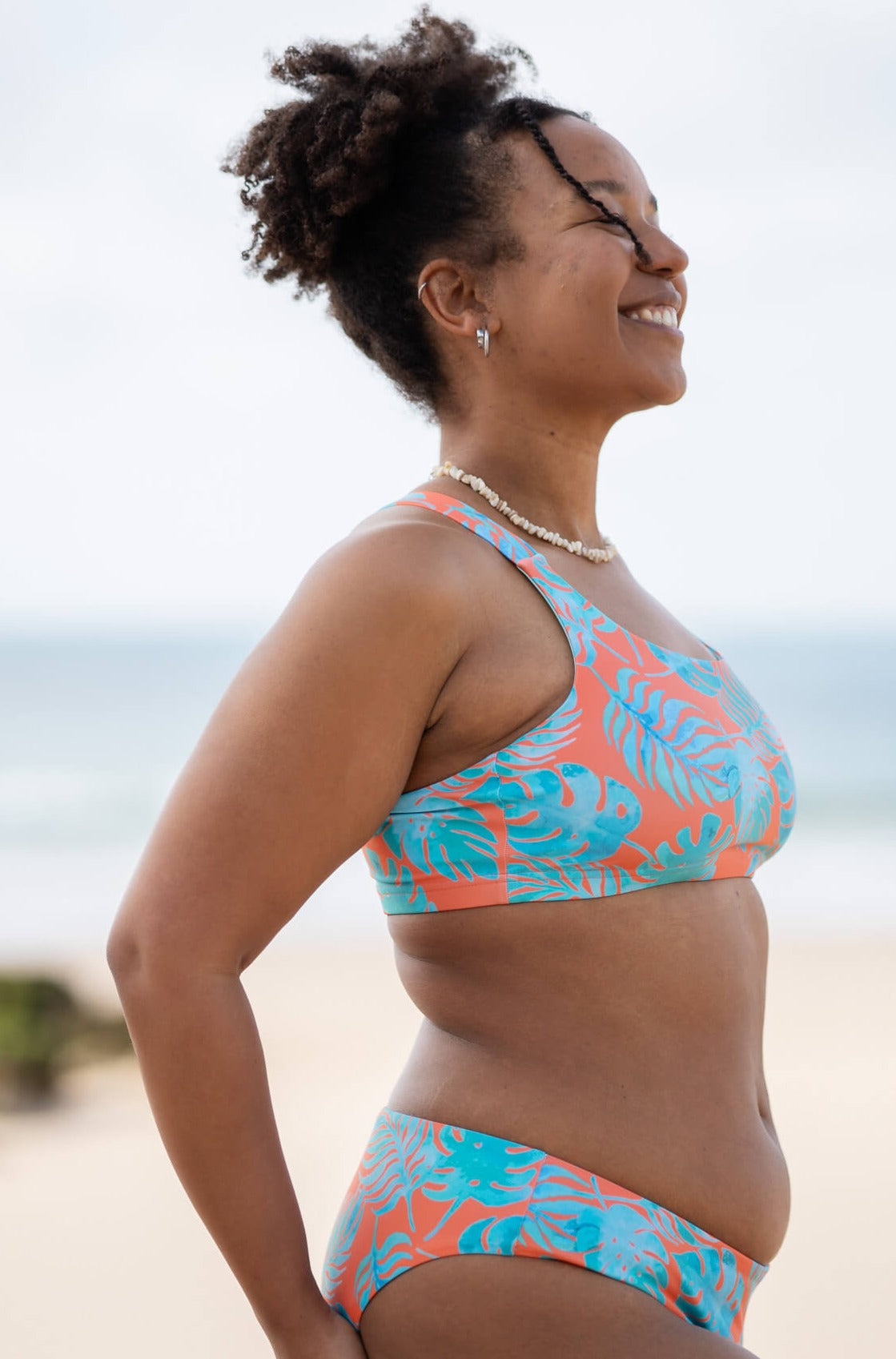 The One Eye top is the perfect top if you are looking for a sporty bikini with a non-slip fit. Its cross-back straps give you extra support and full freedom of movement, so you can move without any restrictions.